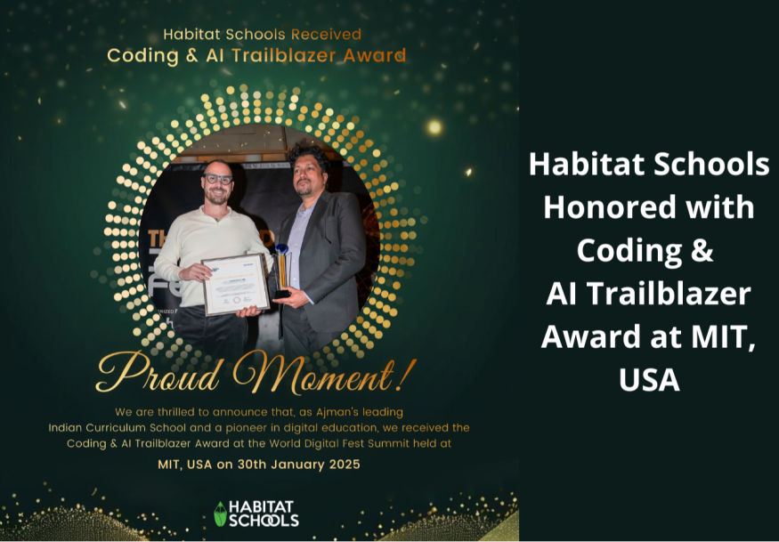 Ajman, UAE – Habitat Schools, the largest Indian curriculum school group in Ajman, has been recognized as a leader in digital education, receiving the Coding & AI Trailblazer Award at the World Digital Fest Summit held at the Massachusetts Institute of Technology (MIT), USA, on 30th January 2025. This accolade highlights Habitat’s commitment to pioneering innovation in coding and artificial intelligence education.