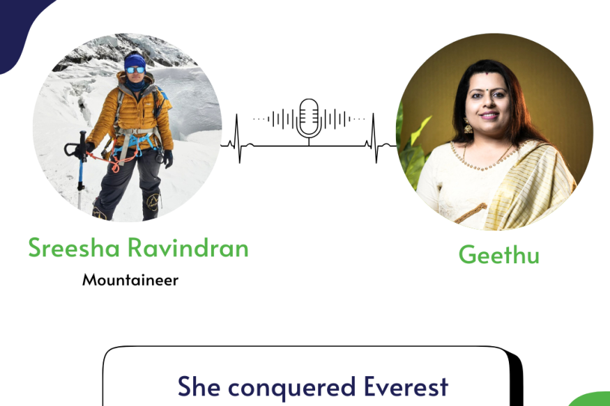 Sreesha Ravindran, a finance professional and classical dancer from Bengaluru, became the second Malayali woman to summit Mount Everest on May 20, 2025.Having scaled over 15 Himalayan peaks, she embodies resilience and breaks societal norms with quiet strength, and is now being interviewed by Geethu.