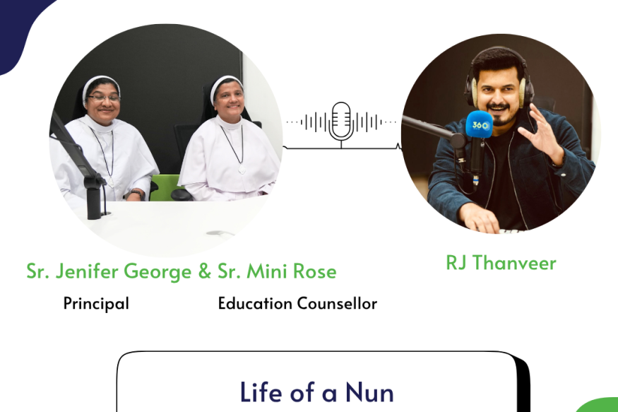 Sr. Jenifer George, Principal of Heart Senior Secondary School, Kottakal, and Sr. Mini Rose, Education Counsellor of Santhom Province, Thamarassery, having a wholesome conversation with RJ Thanveer about life as a nun and about educators shaping young minds. Together, they bring vision and guidance to the field of education.