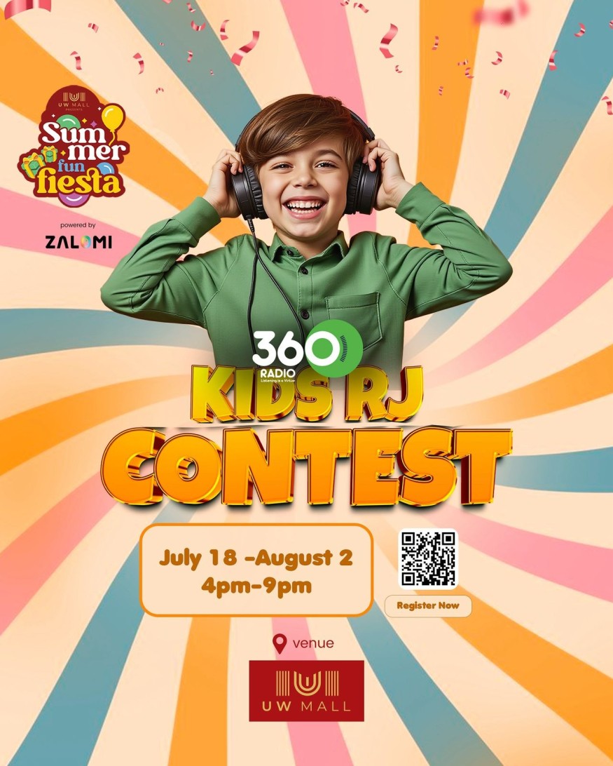 The UW Mall Kids RJ Contest – Summer Fiesta, powered by Zalomi, was held on July 26th where young talents took part in a fun-filled, live RJ competition alongside the RJs of the 360 Radio team