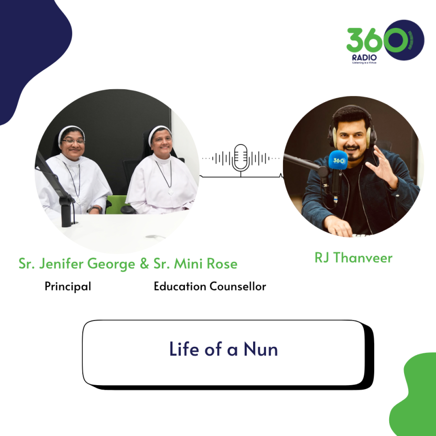 Sr. Jenifer George, Principal of Heart Senior Secondary School, Kottakal, and Sr. Mini Rose, Education Counsellor of Santhom Province, Thamarassery, having a wholesome conversation with RJ Thanveer about life as a nun and about educators shaping young minds. Together, they bring vision and guidance to the field of education.