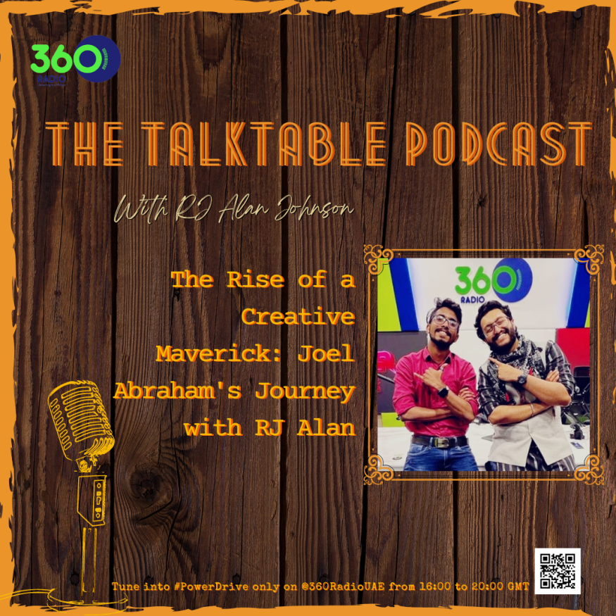 Join RJ Alan on the fifth episode of #TheTalkTable on PowerDrive, as he sits down with Joel Abraham, a young and ambitious filmmaker and entrepreneur who is set out to make a name for himself in the industry. From founding T4Talent, a talent incubator platform, to producing music videos and collaborating with fellow creatives, Joel is quickly becoming a force to be reckoned with. In this episode, he opens up about his journey, his inspirations, and his vision for the future of the creative industry. Don't miss out on this inspiring conversation between Joel and RJ Alan on PowerDrive, only on 360 Radio UAE.